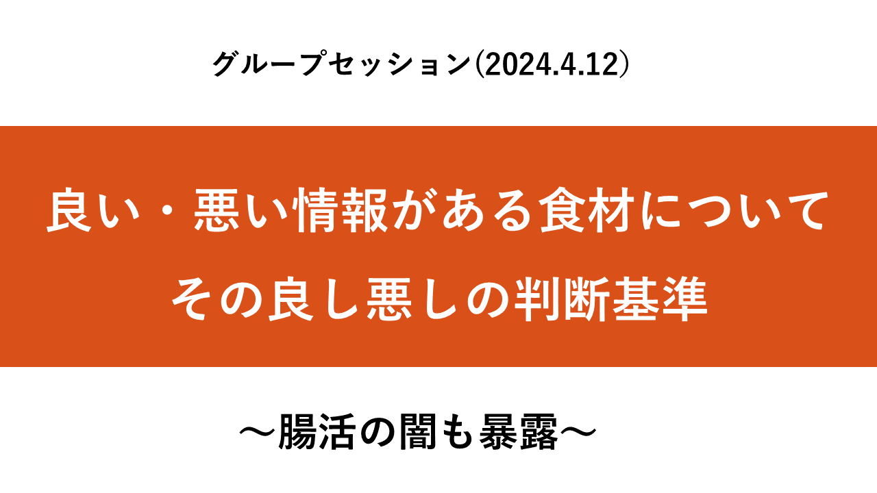 本でNGと書かれていた食材への最適な対応方法は?(2024年4月12日けいのグループセッションその③) グループ質問会 2024.10.062025.07.22 さて今回は、 この会員サイトを開設して 最初に行った けいのグループセッションの内容です。 一般的に良い食品が とある本ではNGと書かれていた場合、 どうしたらいいのか? という質問をいただきました。 これは、実は YouTubeでは絶対に出せない 腸活の闇も話しているので ぜひご覧ください(*’▽’) *動画が画面全体になっていない点 すいません<(_ _)> ここから先は、会員限定コンテンツとなります。