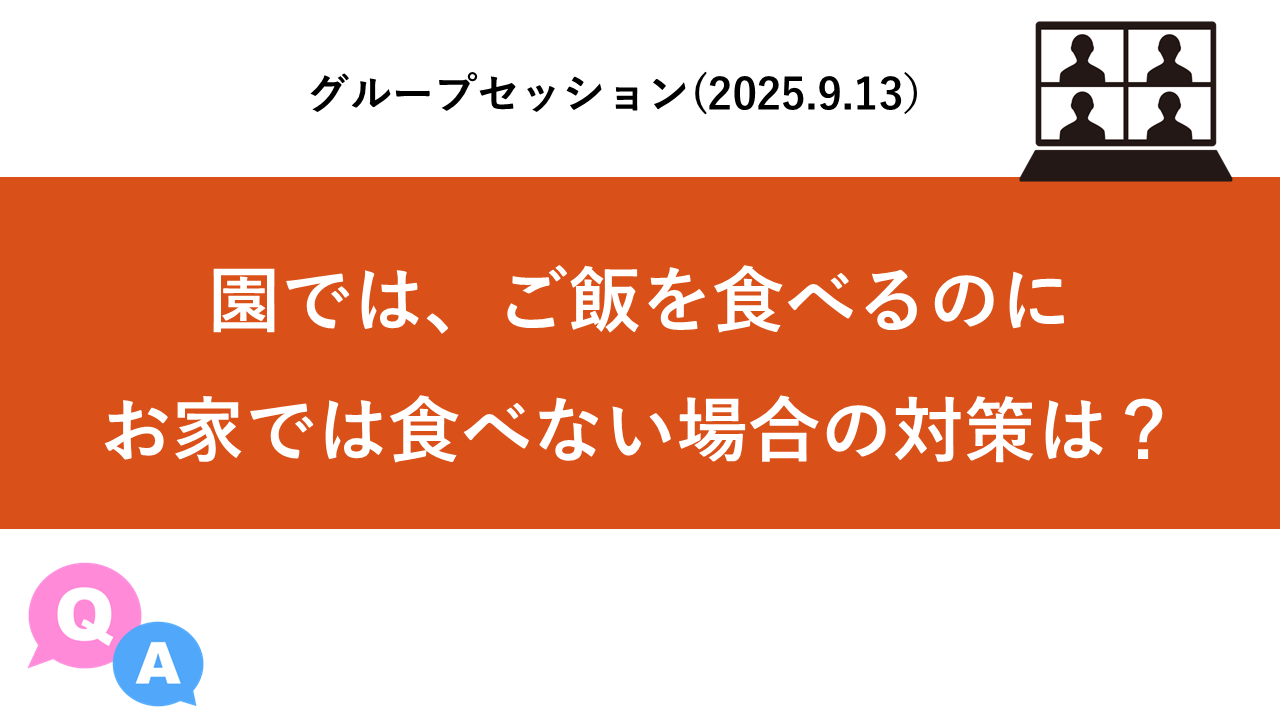 【グループ質問会】園では、ご飯を食べるのに お家では食べない場合の対策 グループ質問会 2025.09.15 今回は、2025年 9月13日に実施した けいのグループ質問会の 録画動画となります♪ 園では、ご飯を食べるのに お家では食べない場合の対策 です。 ここから先は、会員限定コンテンツとなります。
