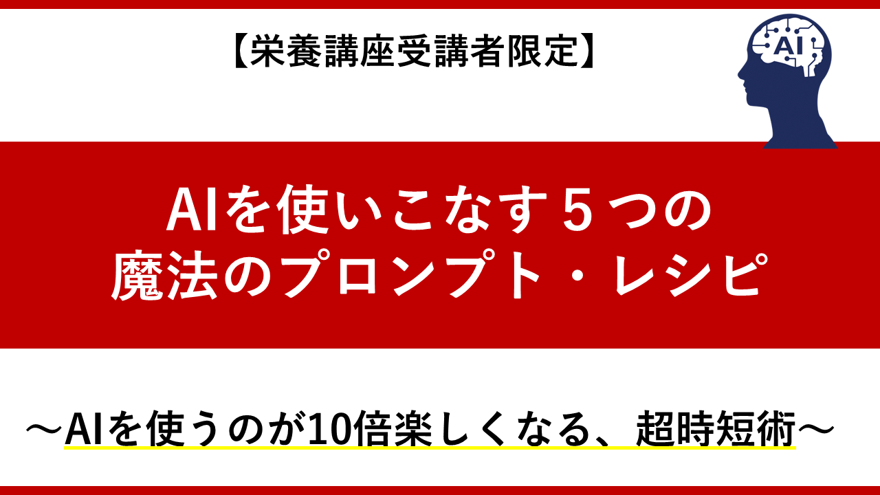 【栄養講座受講者限定】AIに使える魔法のプロンプト5選&超時短術